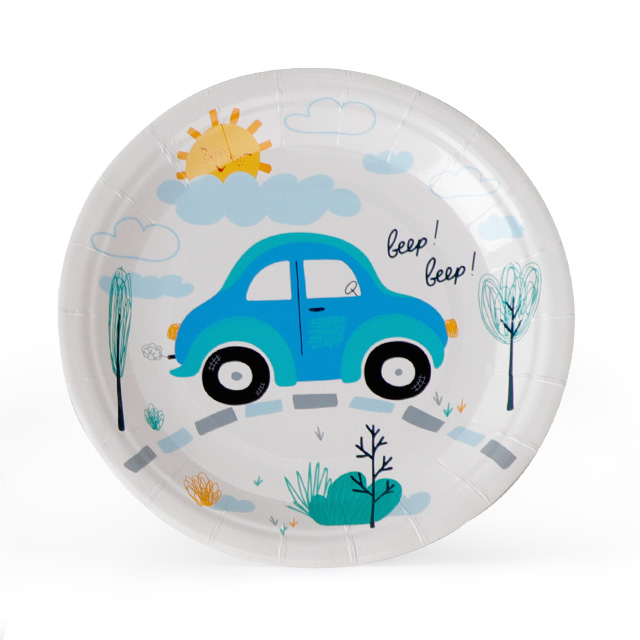 Conception du motif: les plaques de papier sont imprimées avec des motifs de fouille de voitures aux couleurs vives et attrayantes pour augmenter le plaisir et le thème de la fête.